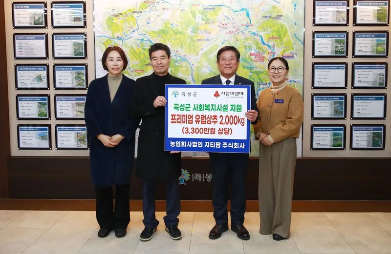 전남 곡성군은 지난 16일 관내 소재한 농업회사법인 지티팜 주식회사(대표 박서하)에서 관내 취약계층을 위한 프리미엄 유럽상추 2,000kg(3,300만 원 상당)을 기부하며 지역사