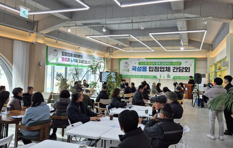 전남 곡성군(군수 조상래)은 지난 18일 관내 소재한 디톡스테라피거점센터 테라밸리에서 2025년 곡성몰 입점업체 간담회를 개최하고 한 해 동안 곡성몰의 성장에 함께해 온 입점업체들
