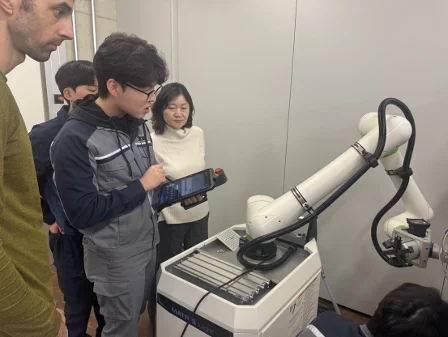 독일 바이에른주의 한 직업학교 실습실. CNC 기계가 정교한 소리를 내며 돌아가고, 로봇 팔이 천천히 움직인다. 그 옆에서 한국 학생과 독일 학생이 함께 모니터를 들여다보며 데이터