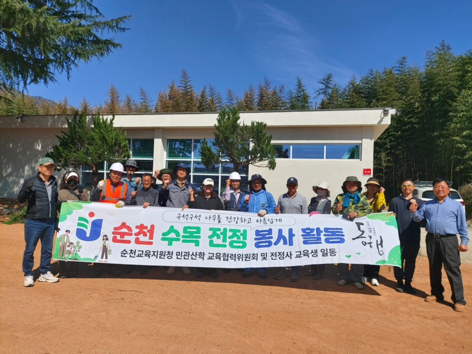 순천교육지원청(교육장 김신규)은 3월 28일 민관산학 교육협력위원회(위원장 이홍태) 위원들과 교육지원청 관계자, 순천대학교 평생교육스쿨 정원식물 전정사 교육생 등이 참여한 가운데