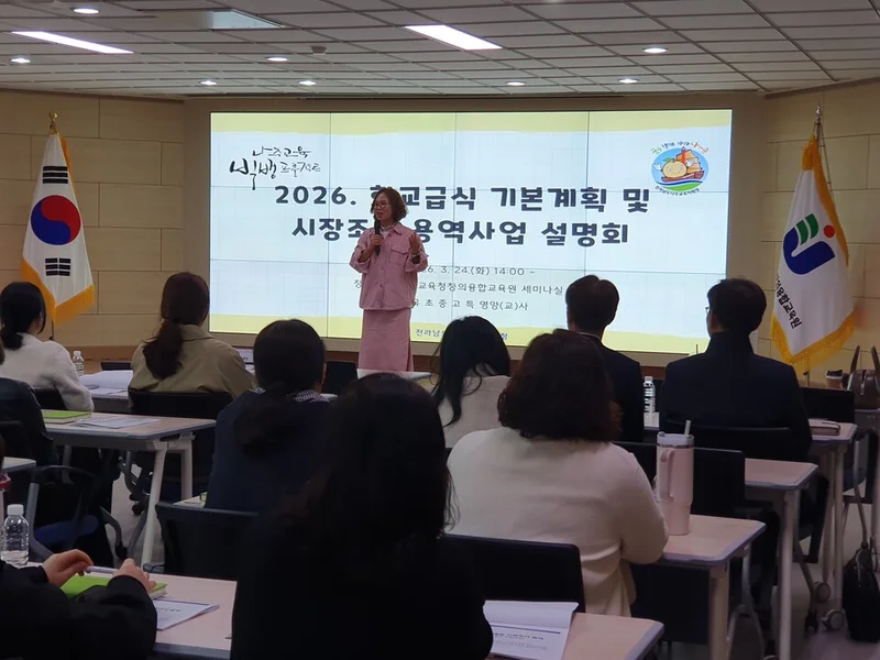 전라남도나주교육지원청(교육장 변정빈)은 3월 24일 전라남도교육청창의융합교육원에서 나주 관내 영양(교)사를 대상으로‘학교급식 기본계획 및 식재료 시장조사 용역사업’설명회를 개최했다