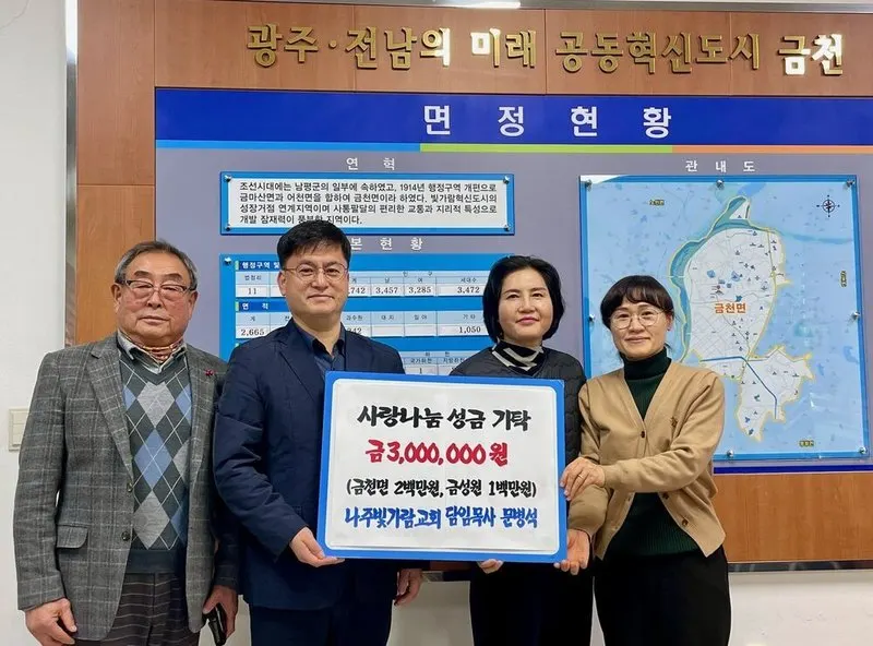 나주빛가람교회, 금천면과 아동복지시설에 300만 원 사랑나눔 성금 기탁