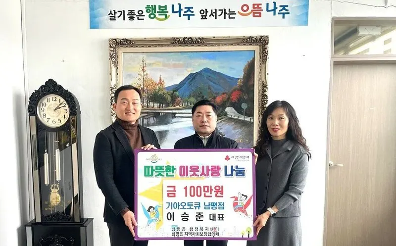 기아오토큐 남평점 이승준 대표, 100만 원 성금 기탁으로 온기 나눔 실천