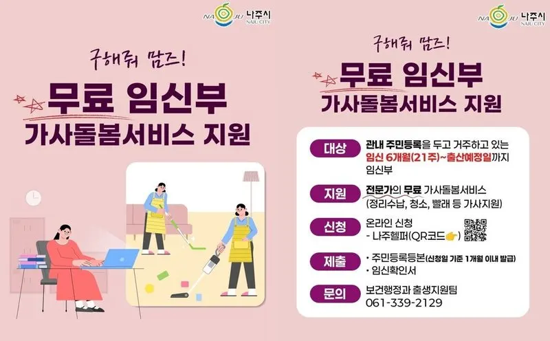 나주시, 임신부 가사돌봄서비스 지속…소득·거주 요건 전폐 지원