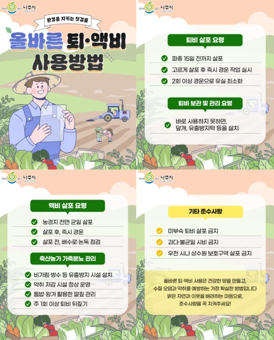 전남 나주시가 본격적인 영농철을 맞아 가축분뇨 퇴액비 살포 과정에서 발생할 수 있는 악취 민원을 예방하고 시민 생활 불편을 최소화하기 위해 사전 예방 중심의 집중 관리에 나선다.