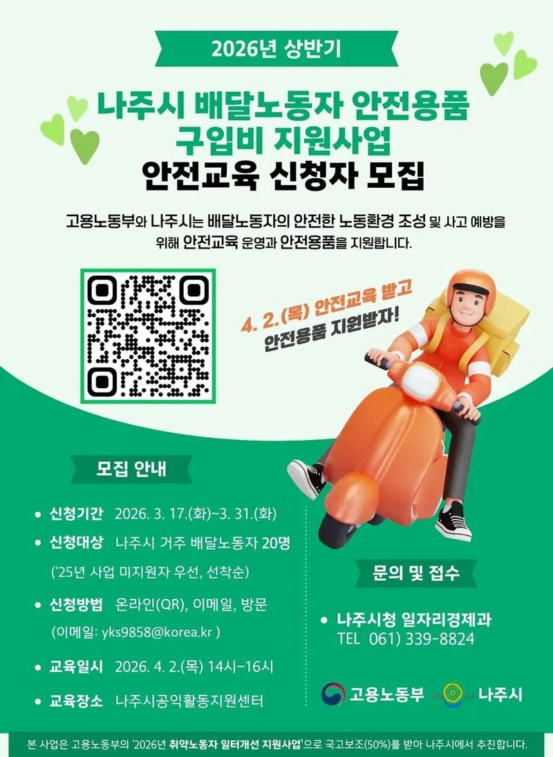 나주시, 배달라이더에 최대 20만 원 안전용품 지원