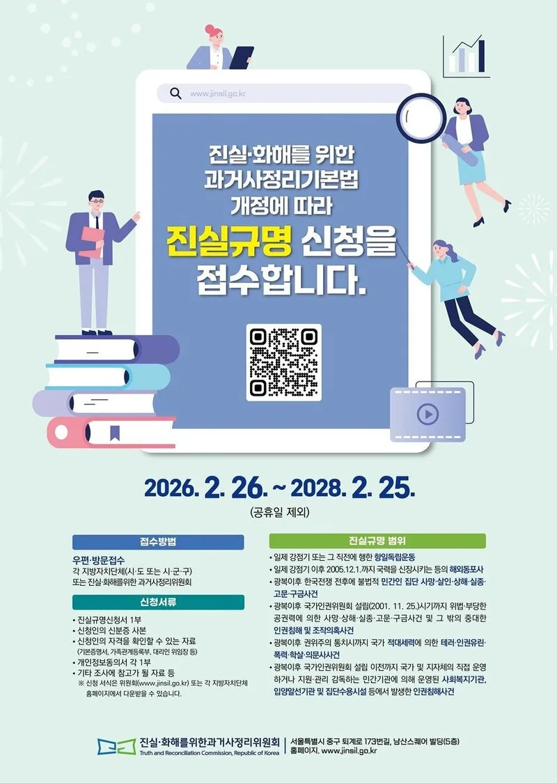 과거사정리법 개정으로 2028년 2월 25일까지 진실규명 신청 접수