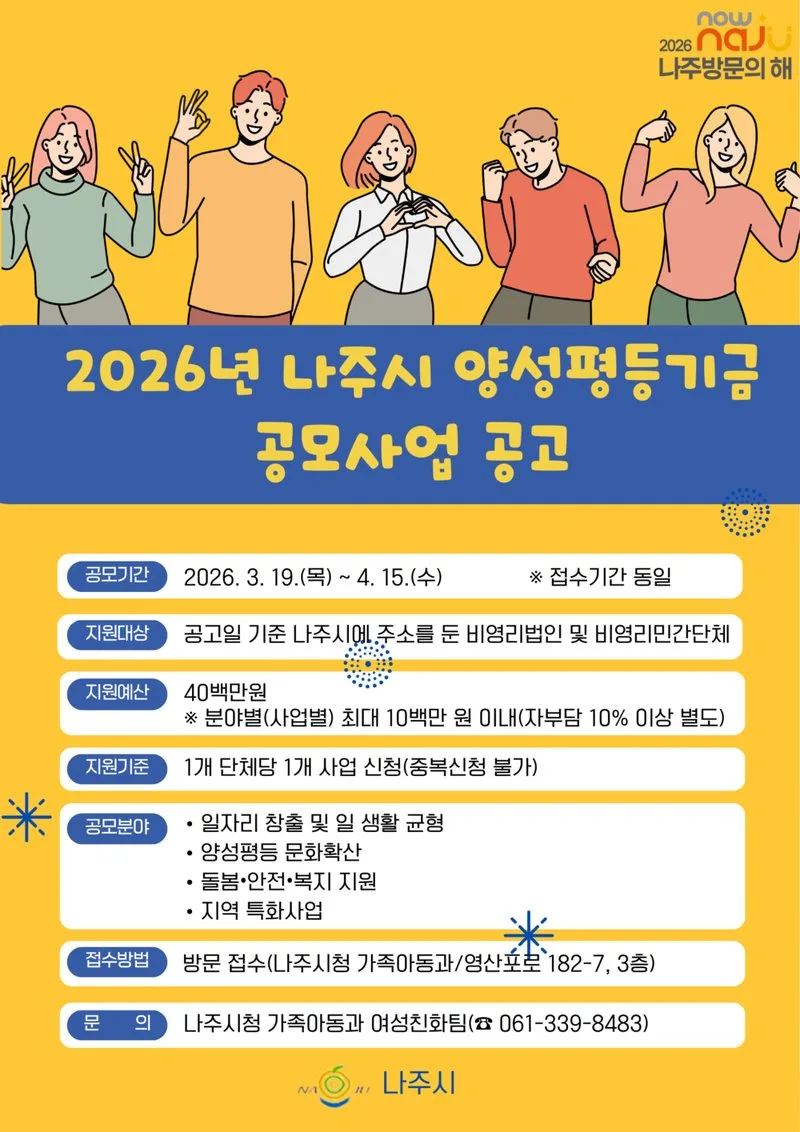 나주시, '2026년 양성평등기금' 사업 공모…4천만 원 지원
