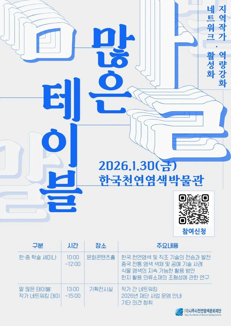 1월 30일 한국천연염색박물관에서 '말 많은 테이블' 행사 개최