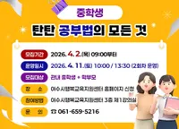 여수시가 오는 4월 11일 여수시행복교육지원센터에서 관내 중학생과 학부모를 대상으로 ‘중학생 탄탄 공부법의 모든 것’ 특강을 개최한다. 이번 특강은 유튜브와 SNS 등에서 ‘곰쌤교