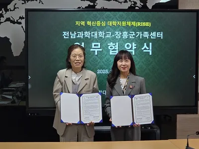 "장흥군가족센터-전남과학대학교 RISE 사업단, 전남 형 지역혁신 대학 지원체계 안착을 위한 전략적 동반관계 구축" 장흥군가족센터(센터장 이은미)와 전남과학대학교 라이즈 사업단(단