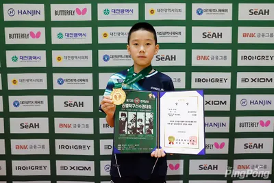 강도현 학생은 지난 20~27일 대전 한밭체육관에서 열린 ‘제72회 전국남녀종별 탁구선수권대회’ 초등 남자부 개인 단식 결승전에서 대구 대실초등학교 서현규 학생(6학년)을 세트 스