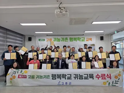 고흥군, 제31기 귀농귀촌 행복학교 수료식 열려 고흥군(군수 공영민)은 지난 3월 20일 남양면에 위치한 귀농귀촌 행복학교에서 제31기 귀농귀촌 행복학교 수료식을 개최했다고 밝혔다