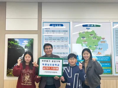 보성군 득량남초등학교 학생자치회(학생회장 신유미)는 지난 29일, 어려운 이웃을 돕기 위해 모은 성금 291,100원을 득량면에 기탁했다고 보성군이 밝혔다. 이번 성금은 학생자치회