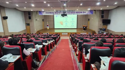광양교육지원청은 2026년 2월 12일 사라실예술촌에서 관내 유·초 교원, 마을교육활동가 80명이 참석한 가운데 ‘마을교육활동가 역량강화 연수 및 마을-학교 만남의 날’을 운영했다