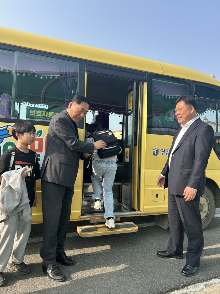 영암교육지원청(교육장 김광수)은 오늘, 학생들의 안전한 통학권 보장을 위해 영암초등학교(등교)와 도포초등학교(하교) 통학차량에 직접 동승하여 현장의 목소리를 청취했다.