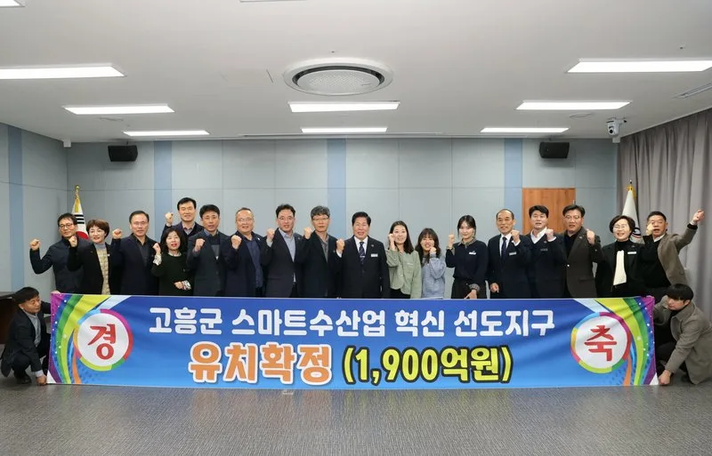고흥군이 해양수산부가 공모한 ‘스마트수산업 혁신 선도지구’ 조성 사업에 최종 선정돼, 총사업비 1,900억 원(국비 1,675억 원, 지방비 225억 원)을 확보했다.