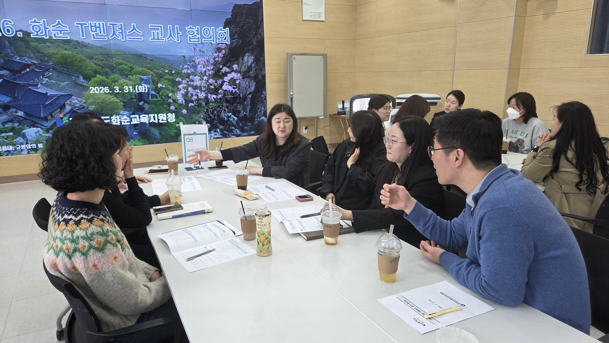 전라남도화순교육지원청(교육장 이지현)은 지난 3월 31일(화) 오후 3시, 대회의실에서 관내 초·중등 교사 53명이 참석한 가운데 ‘2026 화순 T벤져스 교사 협의회’를 열었다. ‘화순 T벤져스 교사 연구회’는 교원의 자발적인 연구와 실천을 통해 교육 전문가로서의 역량을 강화하고, 학교 현장의 실질적인 변화를 이끌어내기 위해 조직된 교사 연구 네트워크다.