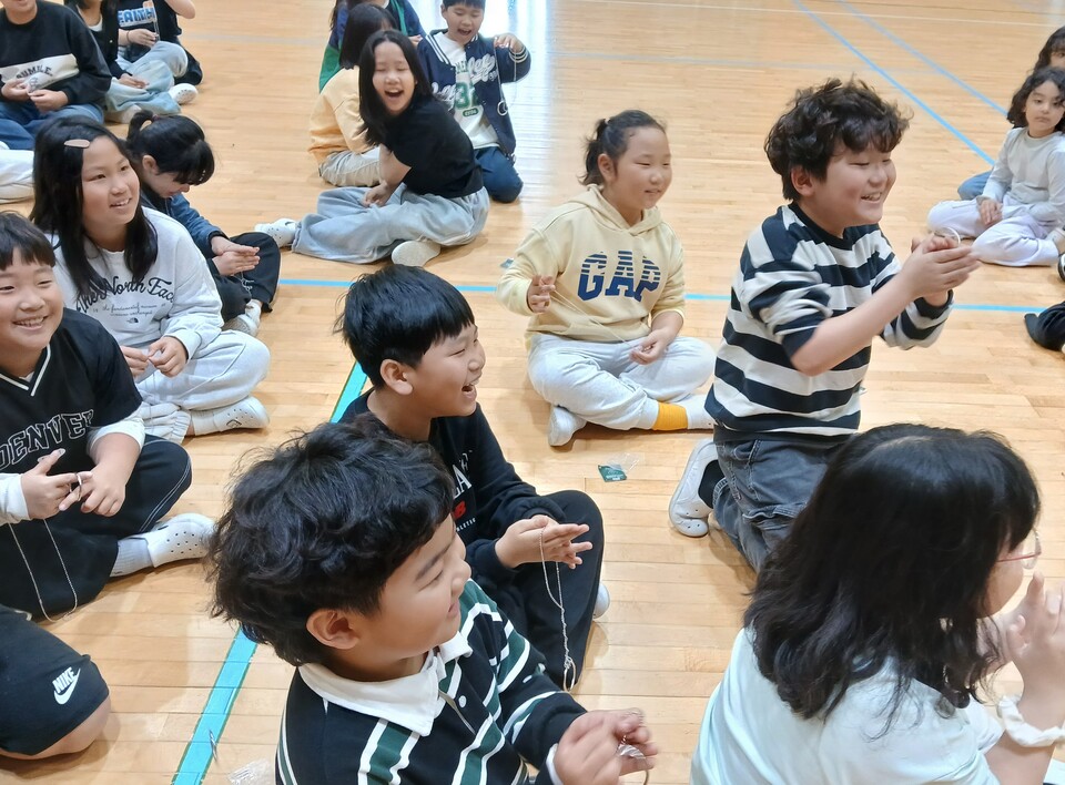 특히 드롭링을 활용한 고리 걸기와 실뜨기 체험에서는 서로 이름을 부르며 응원하고, 성공할 때마다 강당을 가득 채우는 환호성이 터져 나왔다. 6학년 심민정 학생은 “과학의 날 마술쇼를 한다는 소식에 많이 기대했다.