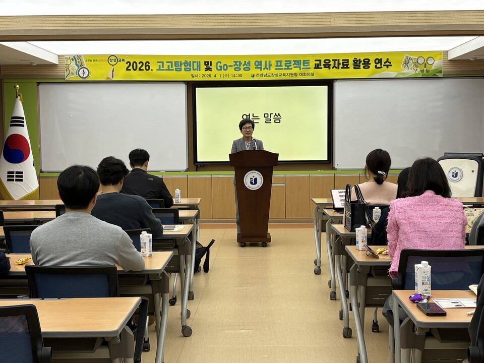 전라남도장성교육지원청(교육장 정선영)은 4월 1일 초·중학교 교사를 대상으로 장성교육지원청에서 개발한 독서인문생태지도(고고탐험대)와 GO-장성 역사 프로젝트(장성 지역사 및 장성교육메타 kr.) 자료 활용을 위한 연수를 운영했다.