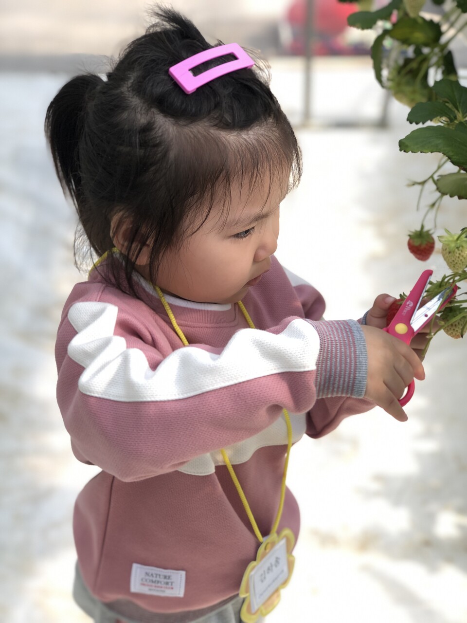 유아들은 딸기의 잎과 줄기, 열매를 직접 살펴보며 생장 과정에 대한 이해를 넓히고, 자연 속에서 오감 체험 중심의 학습을 경험했다.
