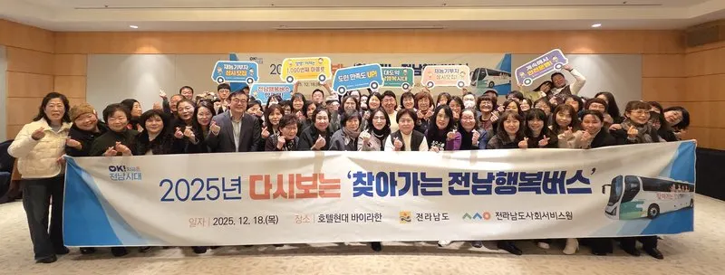 전라남도는 18일 영암군 현대호텔에서 사회서비스 취약 지역 거주 도민을 위해 맞춤형 프로그램을 제공하는 ‘찾아가는 전남행복버스’ 성과보고회를 개최했다고 밝혔다. 이번 행사는 전남행복버스 현장 운영을 적극 지원한 재능기부 자원봉사자와 협업기관 관계자 등 100여 명이 참여한 가운데 유공자 표창, 성과보고, 내년도 사업 추진을 위한 의견 청취 순으로 진행됐다. 찾아가는 행복버스는 보건·문화서비스를 이용하기 어려운 오지마을을 찾아 인바디 검사, 이·미용, 국악 공연 등 26종의 서비스를 하는 사업으로, 올해는 272개 마을을 방문해 8천700여 명에게 7만 건의 서비스를 제공했다. 특히 키오스크 교육 등 도민 생활과 밀접한 프로그램을 지속적으로 발굴·도입하고 있으며, 올해는 보행보조기 수리·세척 서비스를 신규로 추진해 큰 호응을 얻었다. 이와 함께 연간 1천100여 명의 재능기부 자원봉사자가 참여해 현장에 활력을 더하고 있으며, 출연기관·민간단체·학교 등 유관기관과 70여 차례 협업을 진행하는 등 프로그램의 다양성과 완성도를 높이고 있다. 김승희 전남도 사회복지과장은 “전남행복버스가 도내 곳곳을 찾아가 꾸준히 운영될 수 있었던 것은 현장에서 함께한 자원봉사자들 덕분”이라며 “현장에서 나온 다양한 의견을 바탕으로 사업을 더욱 내실 있게 발전시켜, 내년에도 도민 삶에 실질적 도움이 되는 서비스를 이어가겠다”고 말했다. 찾아가는 전남행복버스는 2021년 8월 운영을 시작해 현재까지 935개 마을, 3만 명 이상 도민을 만나 총 23만여 건의 맞춤형 서비스를 제공, 전남도의 대표적 현장 중심의 복지·문화 서비스로 자리매김하고 있으며 이용 만족도는 99%에 달한다. 전남자치경찰, 현장 중심 치안 강화 새해 다짐 2025-12-19 전남도, 대불산단 산업현장 중대재해 예방 교육 2025-12-18