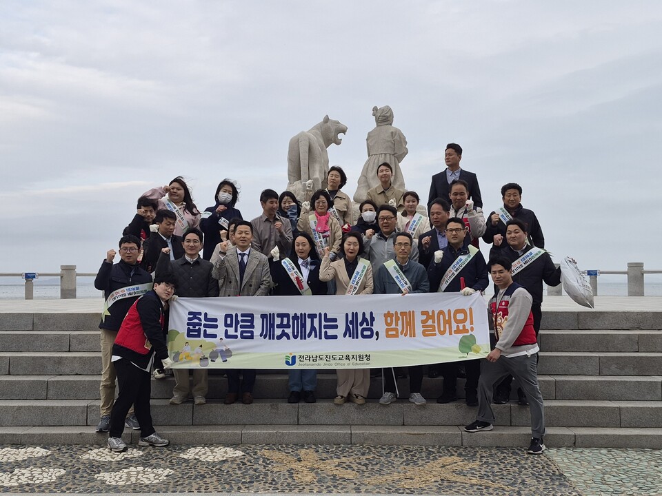 전라남도진도교육지원청(교육장 하숙자)은 4월 20일 진도 신비의 바닷길 축제장 일원에서 교직원의 환경 실천 역량을 높이고 지속가능한 생태환경 조성을 위한 ‘공생의 길 도보 탐사(플로깅)’ 활동을 운영했다.