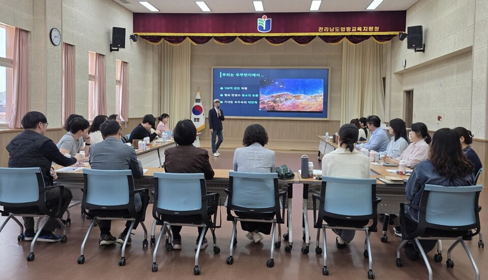 전라남도함평교육지원청(교육장 최은순)은 4월 23일, 교육지원청 대회의실에서 관내 초·중·고·특수·각종학교 생태전환교육 담당 교사 및 희망 교원들을 대상으로 ‘2026년 함그래 교원 아카데미’ 1차 연수를 개최했다. ‘함그래(함평 Green 미래) 생태전환교육’ 활성화를 위해 마련된 이번 아카데미는 기후 위기 시대에 대응하여 실천 중심의 생태 교육 방안을 모색하고, 인간과 자연의 공존 가치를 공유하기 위해 기획되었다.