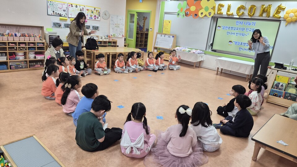 이날 프로그램은 유치원 친구들을 맞이하는 시간을 시작으로, 유아 상호 간 인사 나누기, 첫 만남을 축하하는 케이크 컷팅, 교실 활동인 ‘친구를 찾아라!’게임, 함께하는 실내놀이, 마무리 작별 인사 순으로 운영됐다.