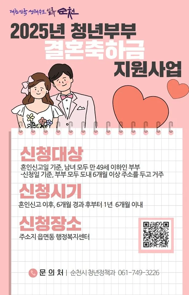 순천시는 청년세대의 결혼 초기 경제적 부담을 줄이고 안정적인 지역 정착을 돕기 위해 추진한 '2025년 청년부부 결혼축하금 지원사업'을 성공적으로 마무리했다고 밝혔다.