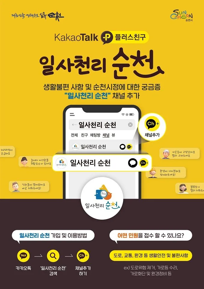 순천시는 카카오톡 기반 생활민원처리 시스템 ‘일사천리 순천’이 올해로 운영 4년 차를 맞아 시민들의 일상 속 불편을 신속하게 해결하는 대표적인 비대면 온라인 소통 창구로 자리 잡았다. ‘일사천리 순천’은 다수의 시민들이 이용하는 카카오톡 채널을 통해 생활 속 불편 민원을 즉시 접수하고 처리 결과까지 확인할 수 있도록 구축된 스마트 민원 서비스다.