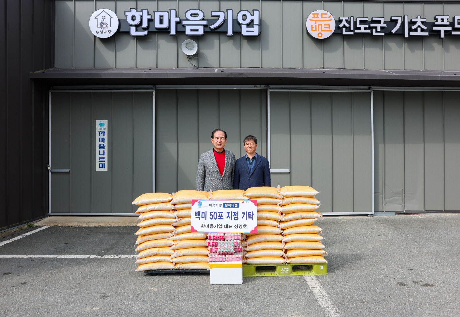 사회복지시설 10개소에 백미 50포, 요구르트 전달 진도군에 소재한 한마음기업(대표 정영호)이 관내 사회복지시설 10개소에 백미 50포와 요구르트를 전달했다.