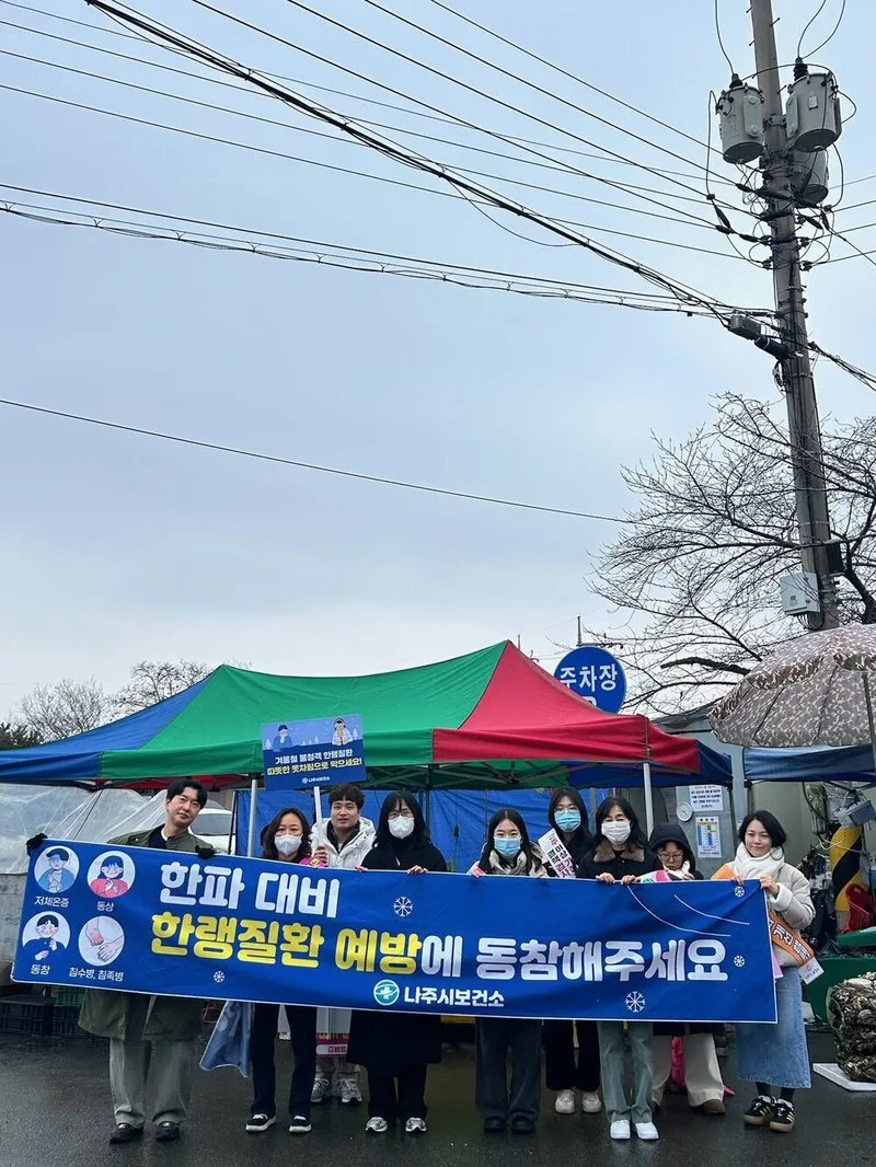 나주시보건소는 지난 10일 영산포풍물시장 일대에서 한랭질환 예방을 위한 현장 홍보 캠페인을 벌였다고 12일 밝혔다. 이는 최근 급격한 기온 하강으로 한파 재난 위기경보가 '주의' 단계로 격상됨에 따른 조치다.