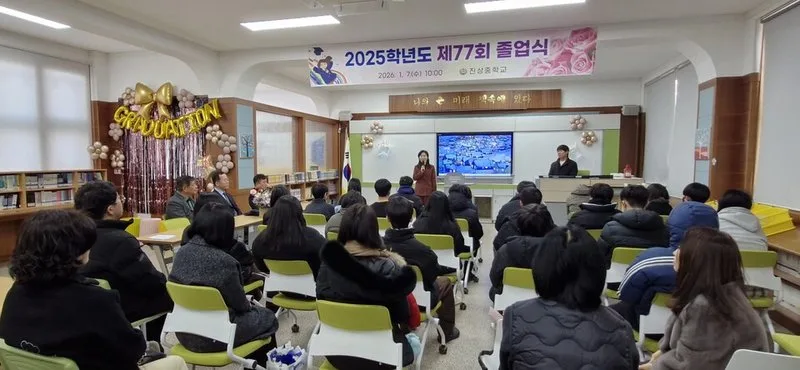 진상중학교는 2026년 1월 7일, 졸업생 2명을 대상으로 학생·교직원·지역사회가 함께하는 따뜻한 졸업문화가 담긴 특별한 졸업식을 개최했다.