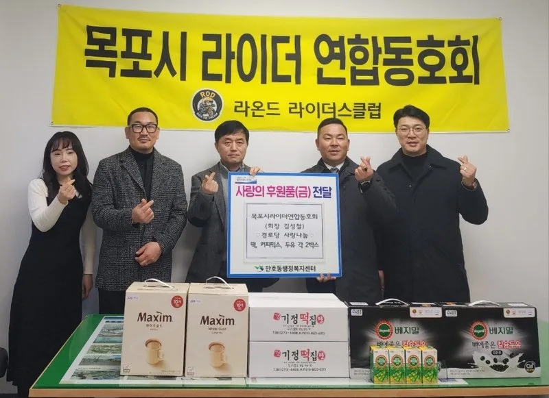 각 동 관계자들도 “추운 날씨에도 불구하고 어르신들을 위한 따뜻한 나눔을 실천해 준 목포시라이더연합동호회에 깊이 감사드린다”며 “앞으로도 민·관이 협력해 어르신들의 건강과 안전을 세심히 살피고, 정이 넘치는 지역 공동체를 만들어 가겠다”고 전했다.