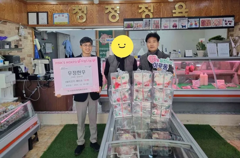 이로동 행정복지센터, 한부모가족에게 돼지고기 케이크 10개 후원 이로동 행정복지센터는 우정한우 대표(김양선)가 최근 연말을 맞아 관내 한부모 가족 10명을 위해 돼지고기 케이크를 후원했다고 밝혔다. 12월 생일인 이웃들을 위한 선물로서의 의미있는 나눔은 소외감 없이 뜻 깊은 연말을 보낼 수 있도록 설렘과 축하의 마음을 전한다. 우정한우는 지난 7월부터 꾸준히 이로동에 돼지고기 후원을 이어오고 있다. 김양선 대표는 "생일을 보내는 어려운 이웃들에게 작게나마 축하의 마음을 전하고 싶다"며, 차태명 이로동장은 "이러한 지역사회의 자발적인 나눔이 이웃들에게 큰 위로와 힘이 된다"고 했다.