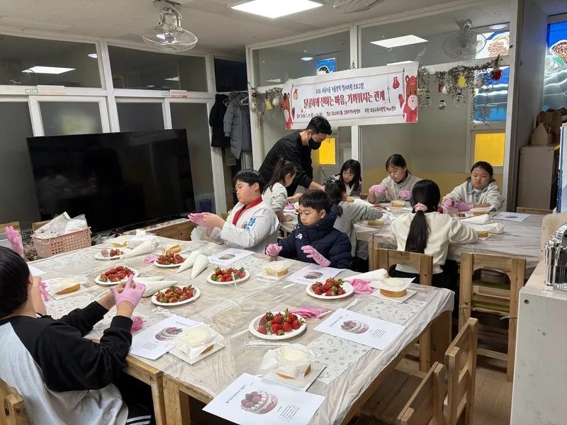 이번 프로그램은 미니 딸기케이크 만들기 활동과 케이크를 함께 나누며 마음을 전하고 싶은 소중한 사람에게 편지를 쓰는 활동으로 구성되었으며, 아동들이 자신의 감정을 자연스럽게 표현하고 타인과의 정서적 유대감을 경험할 수 있도록 기획되었다.