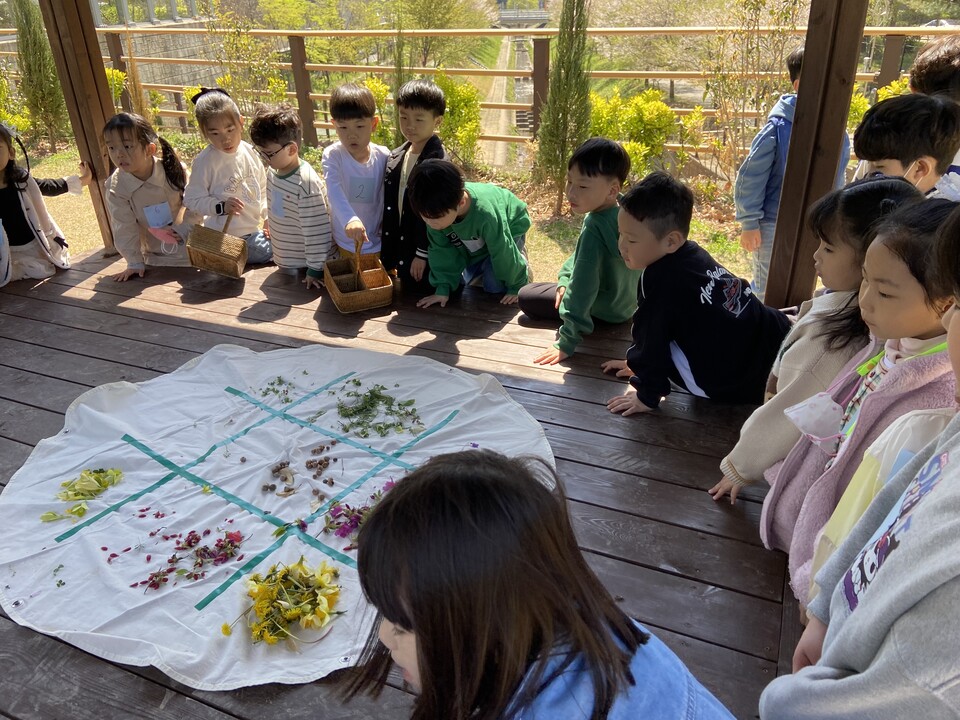 유아와 초등학생은 짝이나 소집단으로 활동하며 봄의 색과 소리, 풍경을 찾아보고, 놀이 과정에서 서로의 생각을 나누며 자연스럽게 가까워졌다.