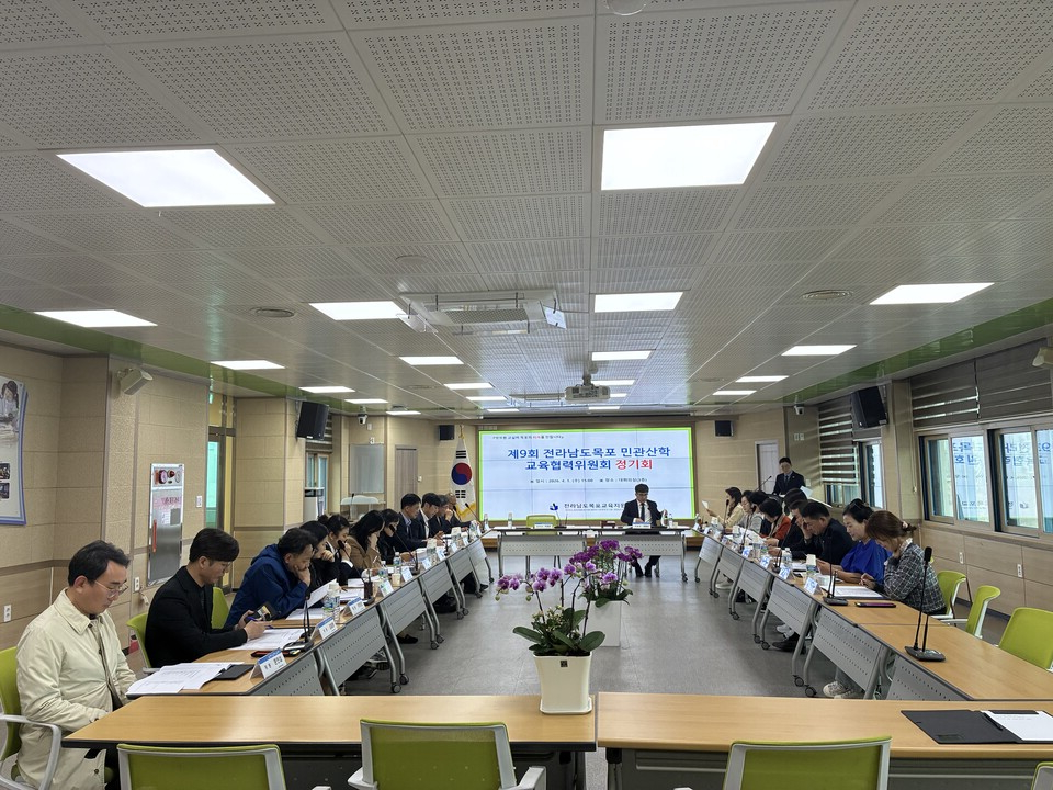전라남도목포 민관산학 교육협력위원회(위원장 정행준)는 4월 1일(수) 목포교육지원청 대회의실에서 제9회 정기회를 개최하고, 전라남도교육청과 광주광역시교육청 통합을 앞두고 위원들의 의견을 종합한 정책 제안 결과를 공식 발표했다.