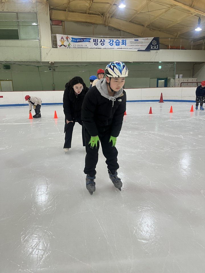 처음에는 미끄러운 얼음판 위에서 중심을 잡기 어려워 엉금엉금 걷기도 했으나, 전문 강사의 지도 아래 이내 균형을 잡으며 빙판을 가로지르기 시작했다.