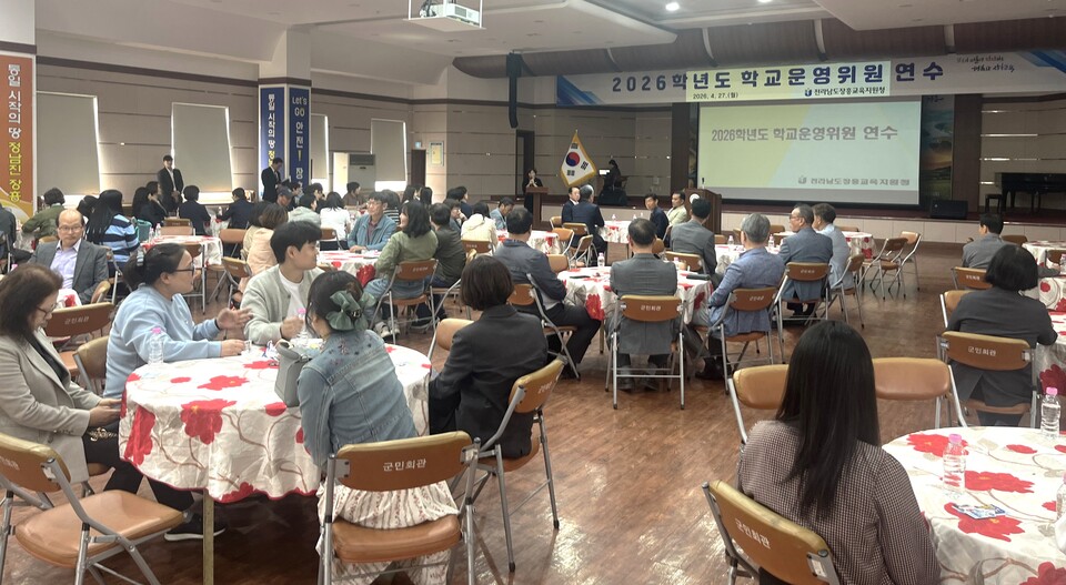 전라남도장흥교육지원청은 4월 27일 장흥군민회관에서 관내 유·초·중·고 학교운영위원 및 간사 150여 명을 대상으로 ‘2026년도 학교운영위원 연수’를 열고, 운영위원회의 민주성과 전문성 강화를 위한 실천 방안을 공유했다.