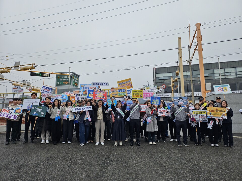 새 학기를 맞아 어린이 보호구역(스쿨존) 내 교통사고를 예방하고 안전한 교통문화를 조성하기 위해 마련된 이번 캠페인에는 나주시청, 나주경찰서, 모범운전자회, 녹색어머니회 등 관계자 수십 명이 참여해 민·관 합동의 강력한 안전 의지를 다졌다.