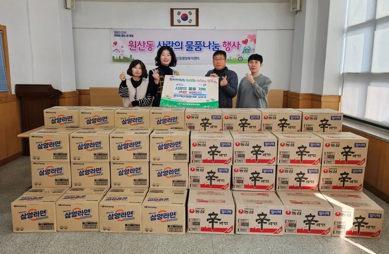 원산동은 한두레 산정점(대표 임점식)이 지난 29일 연말연시를 맞아 라면 40박스(약 150만 원 상당)를 기탁하며 이웃사랑을 실천했다고 밝혔다.