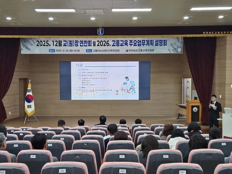 전라남도 고흥교육지원청(교육장 권형선)은 12월 30일(화) 고흥Wee센터 다목적강당에서 관내 유·초·중·고 교원장 37명이 참여한 가운데 「2025. 12월 교원장 연찬회 및 2026.