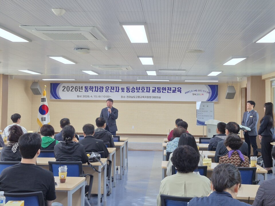 전라남도고흥교육지원청(교육장 권형선)은 지난 4월 15일(수) 고흥교육지원청 대회의실에서 관내 학교 및 직속기관 통학차량 운전자와 안전지도요원을 대상으로 ‘2026년 통학차량 관계자 안전교육 연수’를 성황리에 개최했다.