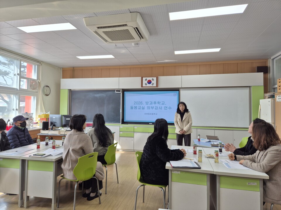 진원동초등학교는 지난 3월 5일, 본교 과학실에서 방과후학교 및 돌봄교실의 내실 있는 운영을 위한 ‘2026학년도 방과후학교·돌봄교실 외부강사 연찬회’를 개최하였다.