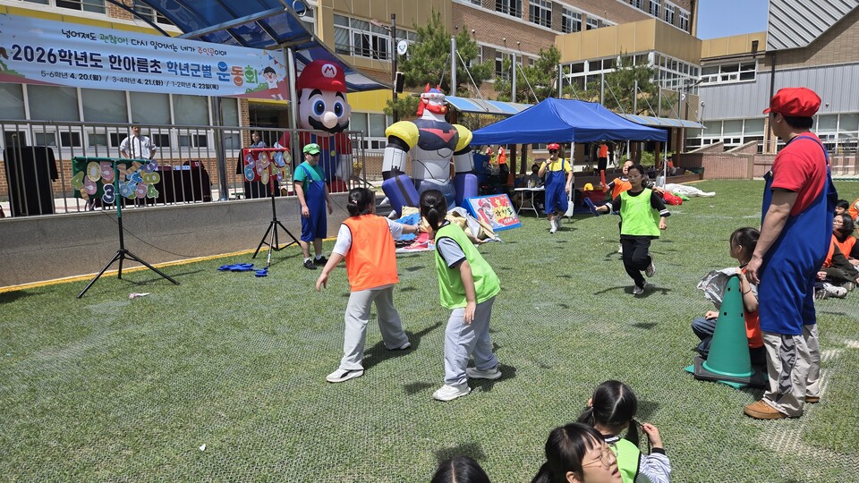 한아름초등학교(교장 송춘달)는 지난 4월 20일부터 23일까지 사흘간, 학생들의 건강한 체력을 증진하고 협동과 배려의 가치를 배우는 ‘2026학년도 학년군별 운동회’를 성황리에 마쳤다.