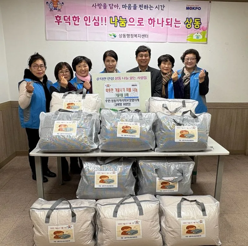 상동 행정복지센터(동장 최양선)는 연말을 맞아 어려운 이웃을 돕기 위한 각계각층의 따뜻한 나눔 활동이 이어지고 있다고 밝혔다. 먼저, 상동 지역사회보장협의체(위원장 김애영)는 겨울철 추위에 취약한 어르신들을 위해 차렵이불 세트 10채를 마련해 전달하며 따뜻한 온정을 전했다. 또한 목포조리과학고등학교(교장 안인술)에서는 학생들이 직접 담근 김치 30박스를 지원해 어르신들의 겨울철 식탁 걱정을 덜어주었으며, 상동 행복나눔마을공동체(상동주공 1·3·4단지)는 바자회 수익금으로 마련한 컵라면 150박스를 기탁하며 나눔에 동참했다. 이와 함께 전남유통연합회(회장 박강진)도 상동종합사회복지관을 통해 컵라면 100박스를 지원하며 지역사회 나눔 문화 확산에 힘을 보탰다. 김애영 위원장은 “비록 작은 나눔이지만 어려운 이웃들에게 온기를 전할 수 있어 매우 뜻깊다”며 “앞으로도 지역사회 내 소외되는 이웃이 없도록 지속적인 지원 활동을 이어가겠다”고 밝혔다. 상동 관계자는 “많은 분들의 따뜻한 마음이 모여 더욱 의미 있는 연말을 맞이할 수 있었다”며 “앞으로도 민·관이 협력해 어려운 이웃들이 소외되지 않도록 지속적인 나눔을 이어가겠다”고 전했다.