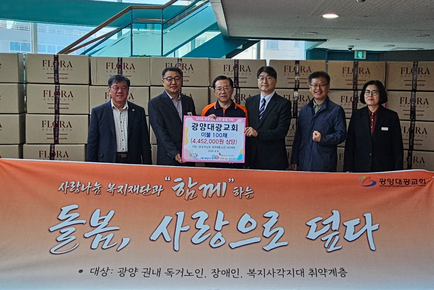 한편, 광양대광교회는 매년 취약계층을 위한 성금 기탁과 봉사활동을 통해 지역 복지 향상에 기여하고 있다.