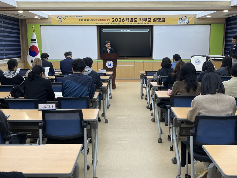 전라남도장성영재교육원은 2026. 3. 30.(월) 장성교육지원청 대회의실에서 ‘2026학년도 영재교육원 학부모 설명회’를 개최하였다.
